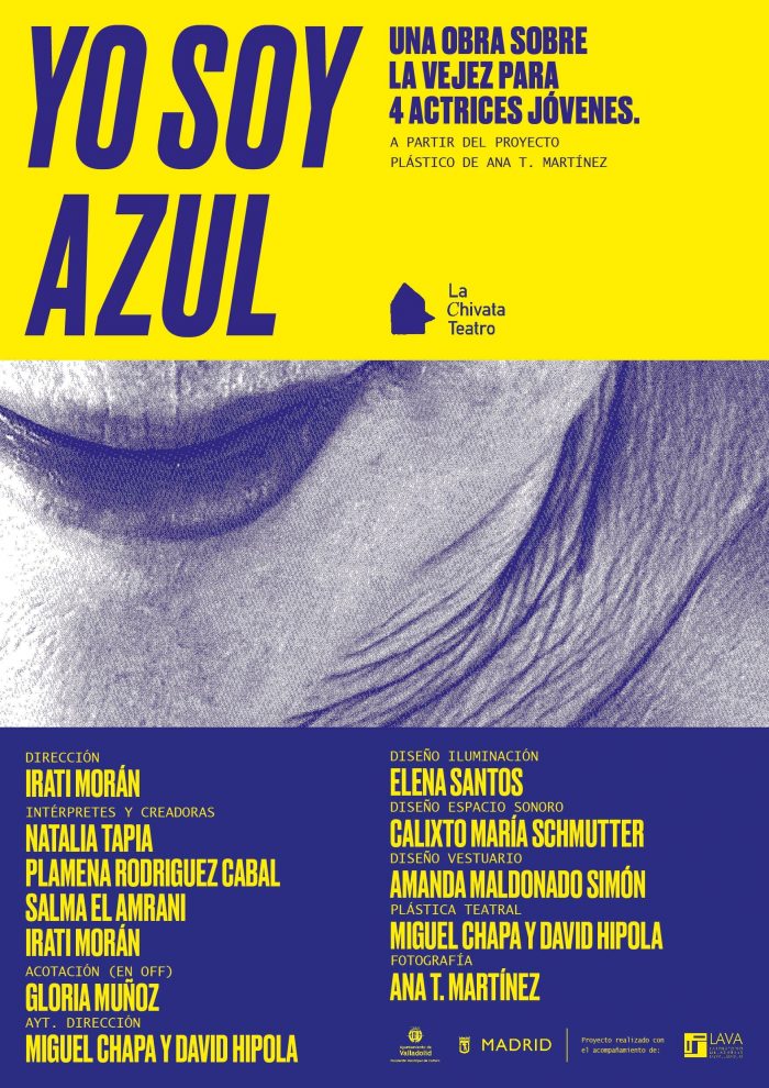 Laย Chivata Teatroย presenta su mรกs reciente trabajo Yo Soy Azul. Una obra sobre la vejez para cuatro actrices jรณvenes. Una obra que desafรญa los estereotipos en torno al envejecimiento y que busca transformar la percepciรณn de las mujeres mayores y sus cuerpos. Bajo laย direcciรณn de Irati Morรกn, la dramaturgia se ha construido conย relatos reales de cartasย que las artistas de la compaรฑรญa se han escrito con mujeres mayores de 60 y adolescentes de entre 13 y 19 aรฑos sobre los cambios de sus cuerpos. Esta mediaciรณn epistolar ha conectado a mujeres de distintas edades y les ha permitido compartir experiencias sobre la vejez, el deseo y la identidad corporal. Se podrรก ver losย viernes de noviembre en Nave 73.